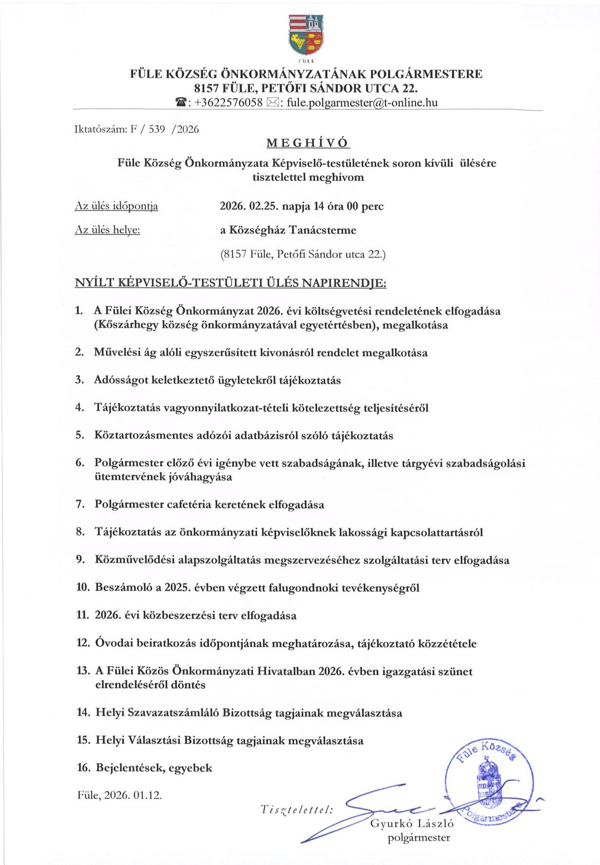 Meghívó Képviselő-testületi ülésre (2026.02.25)